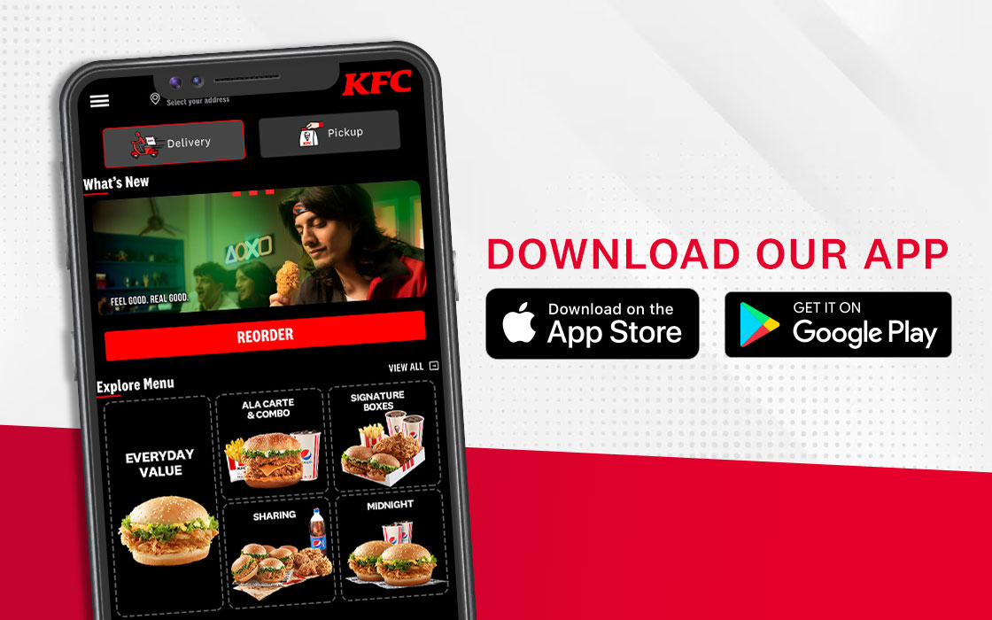 KFC Chicken Fillet Two types of cheese spicy chicken patty Secret Sauce Onion rings lettuce Special bun